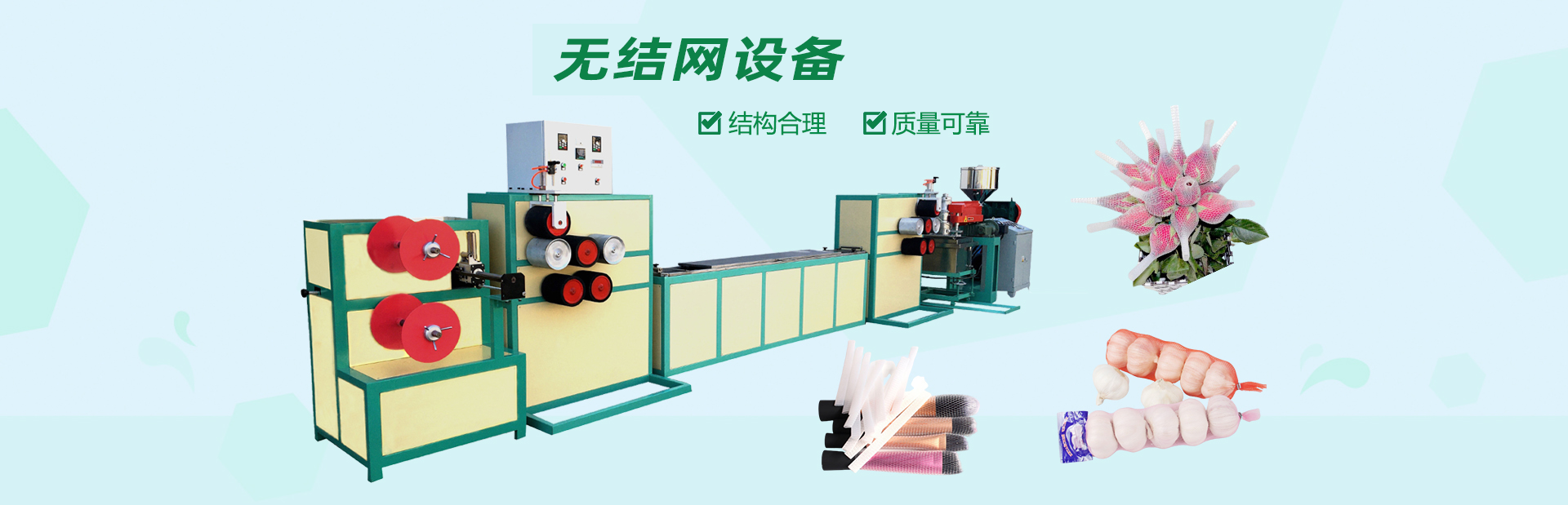 龍口市山河塑業(yè)有限公司生產(chǎn)的發(fā)泡網(wǎng)套機(jī),用于水果、蔬菜、花蕾及瓶類的外包裝。我公司具有多年的實(shí)踐經(jīng)驗(yàn)和可靠的技術(shù)力量,根據(jù)市場(chǎng)需求開(kāi)發(fā)各種規(guī)格的網(wǎng)套。每24小時(shí)生產(chǎn)蘋果網(wǎng)套80萬(wàn)-120萬(wàn)個(gè),設(shè)備驅(qū)動(dòng)電機(jī)采用變頻控制,調(diào)速精度高、范圍廣、能耗低、運(yùn)行可靠每小時(shí)僅用電10度左右,產(chǎn)量提高。此外,該生產(chǎn)線配置不同的模頭和輔機(jī)可生產(chǎn)發(fā)泡片、發(fā)泡管、發(fā)泡棒、發(fā)泡條及異型材等產(chǎn)品。